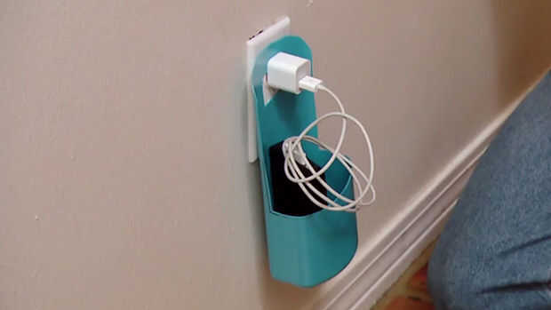 Cortar la botella de shampoo desde el frente hacia arriba. Luego corte un agujero para el cargador en la parte superior. Pintarlo como quieras y enchufe el cargador a través del agujero para colgar.