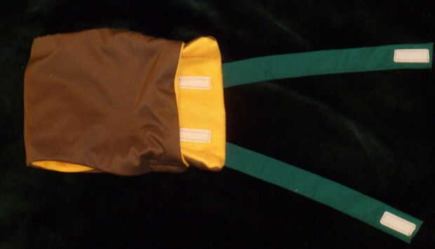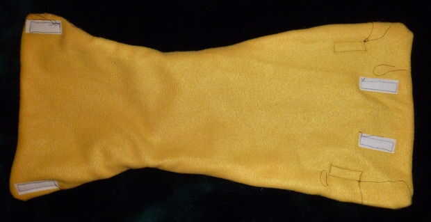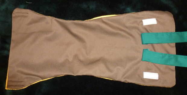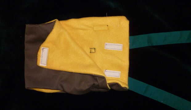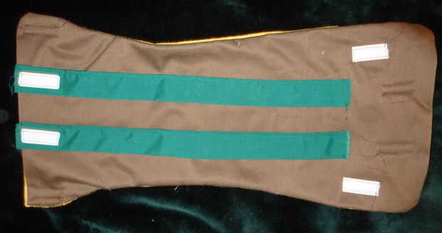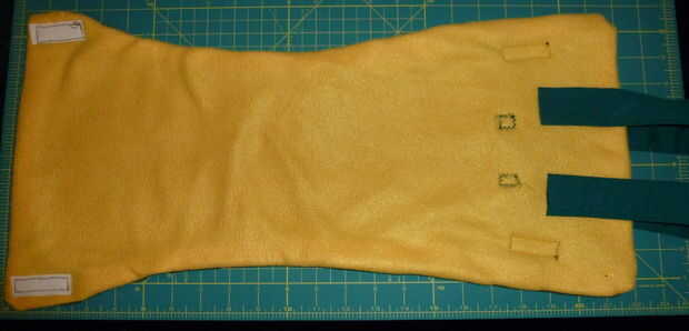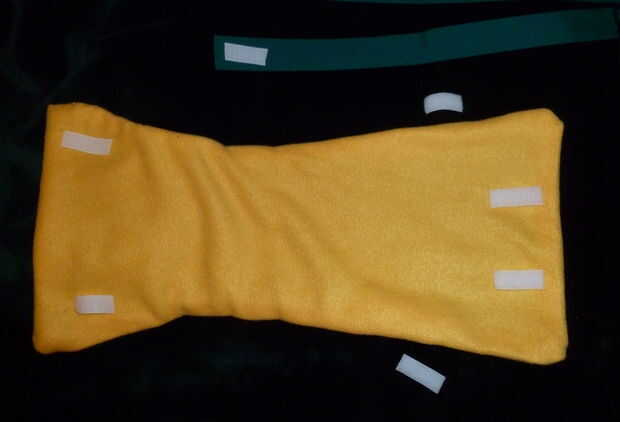 Colocar las piezas de velcro (unos 2" largo cada una), asegurándose de que coincidirá con ganchos (cara áspera) con lazos (lado suave) cuando esté terminado.