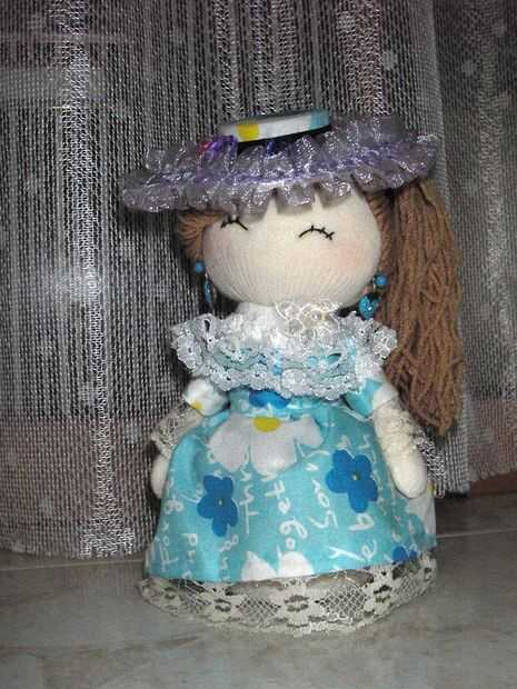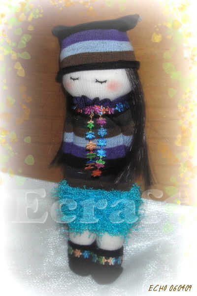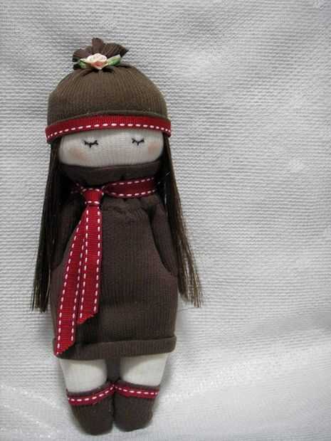 encontrar un calcetíncortado al tamaño adecuadocoser en los ojos de botóncortar franjas de calcetín para los brazos y coserloscoser una línea de hilo rojo para la bocacostura en hilo colgando en la cabeza para el pelohacer ropa (opcional) como se ve