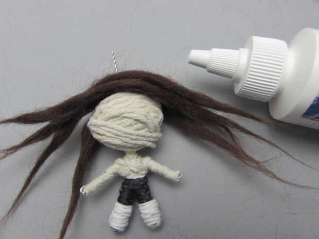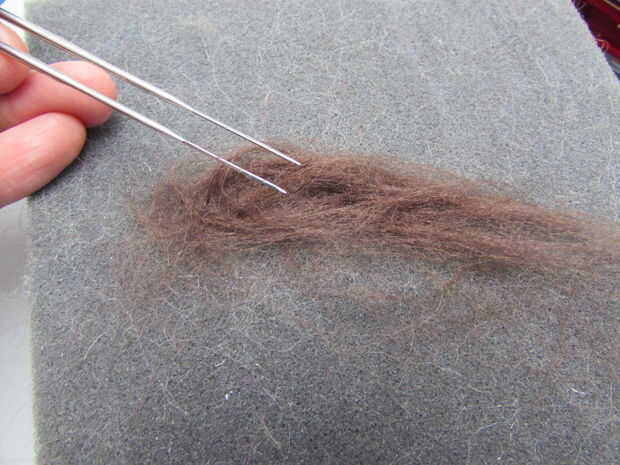 Para sus rastas puede aguja fieltro lana o simplemente frotando pedazos de lana entre sus manos se sentía mucho más rápido. He pegado la lana afieltrada encima de la cabeza y corte el sobrante.