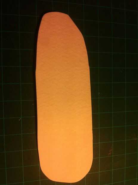 Tome un pedazo de sobra de la hoja de la tarjeta y corte sobre la pieza de 3.5X10cm grande en forma de un rectángulo con los bordes redondos. Observe que la forma no es importante, ya que quedo oculto.