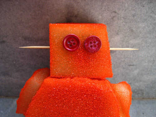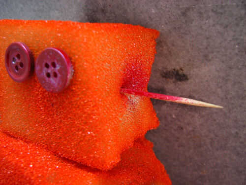 Hacer la oreja con cepillo de dientes. Empuje que el diente toma en lado derecho e izquierdo de la cabeza. Luego pintar un lado pequeño del oído con aerosol rojo.