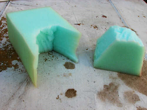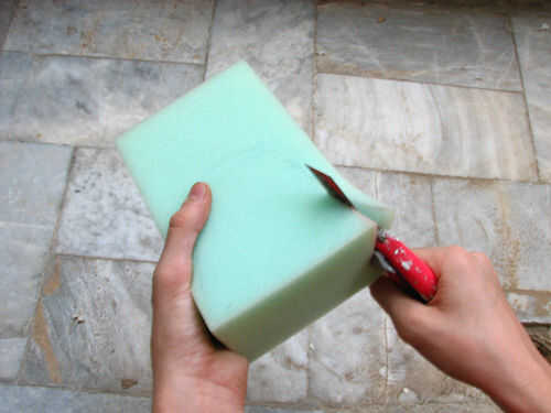 Ahora corte de la esponja con una cuchilla. Para mejores resultados, utilice una hoja afilada y grande.