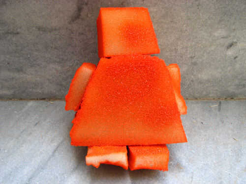 Pegamento el cojea con pegamento líquido. Pegar la cabeza en el cuerpo. Y las manos derecha e izquierda. Pegue las piernas horizontales, ya que puede hacer equivalencia para sentarse.