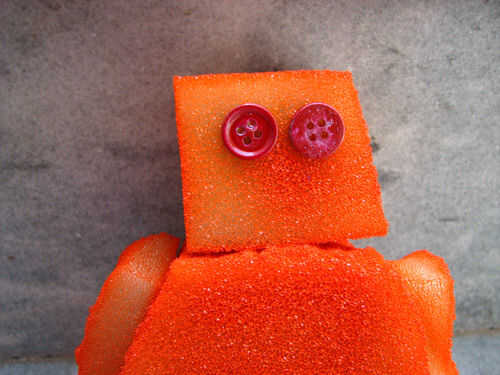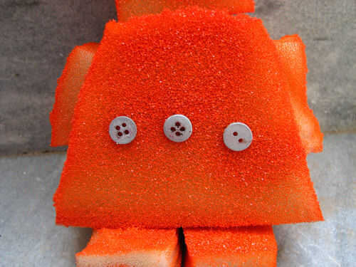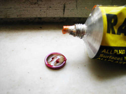 Pegue los botones con pegamento líquido ejemplo cojea. Pegar los botones rojos en la cabeza y los botones de plata en medio del cuerpo.