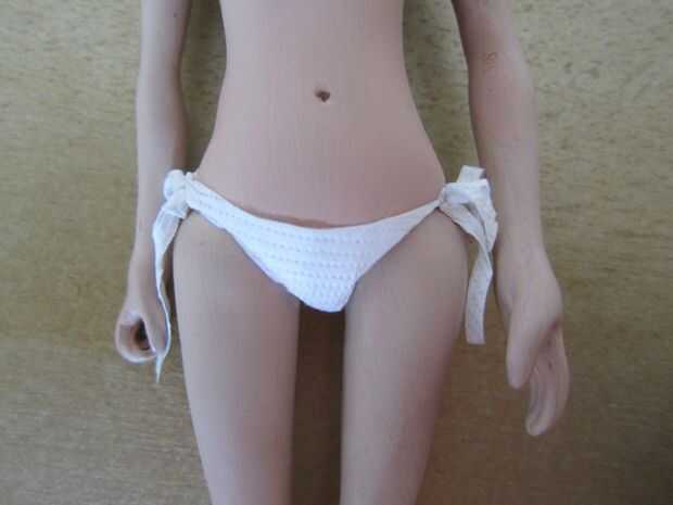 Como la muñeca es completa, es hora de vestirla, a partir de algunas bragas.