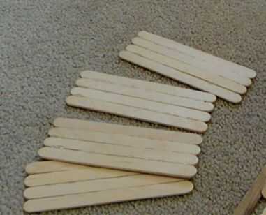 Usar 4 palos y ponen paralelas entre sí y encolarlos. Hacer 4 de estas.