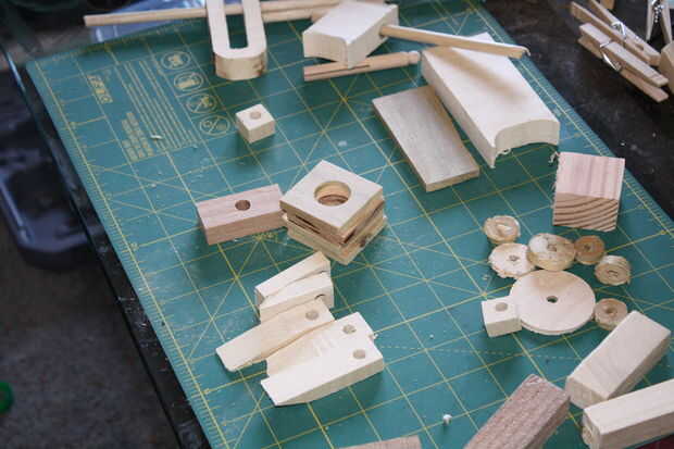 Busque desechos en cualquier lugar. En además de divertidas formas y bloquean, querrá tacos, pinchos de bambú, etc.. No tiene que ser todo de madera, aunque si va a utilizar otro material, puede que necesite accesorios, herramientas o pegamentos. Mira este post de blog sobre taller de Dremel de Jill Timmy thistothat.com para saber como adherir diferentes materiales.