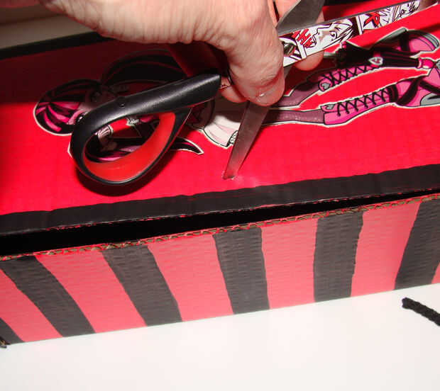 Luego ató un nudo en el interior de la tapa y pegadas a la tapa del ataúd para asegurar. Pegada sobre la tapa todo con cinta de garfio.
