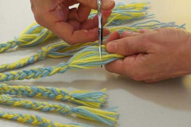 Corte los hilos blando libre al final de los tentáculos. Dejar unos 1½" como borlas.
