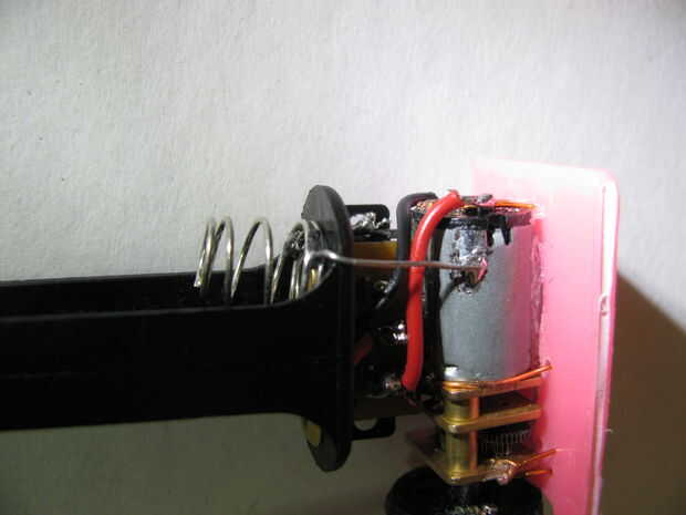 De la soldadura de los cables de soporte de batería para el interruptor y el motor y conectar al motor de cola. Luego fijarlos por soldar algunos cables entre sí.