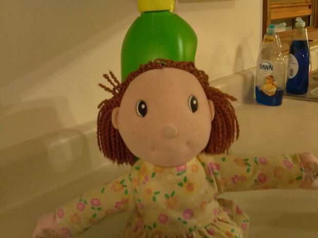 Creo que es importante que la muñeca tiene un aspecto feliz. Más adelante cuando presentamos la muñeca al niño, lo hacemos como un 'juego' y la muñeca será de dolor durante el juego cuando se tratan los síntomas, pero no queremos una muñeca triste, queremos que el dolor/molestia temporal.