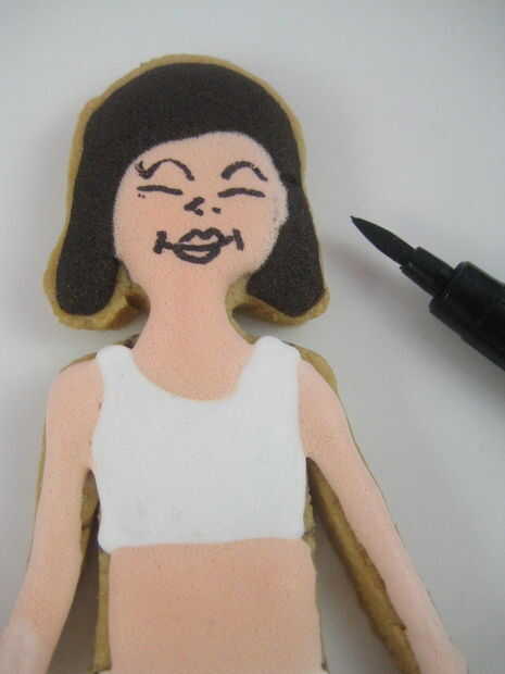 Una vez las caras se dibujan en líneas en las rodillas y un ombligo.