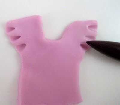 Utilice la herramienta frilling para hacer sangrías en las mangas como volantes decorativos.