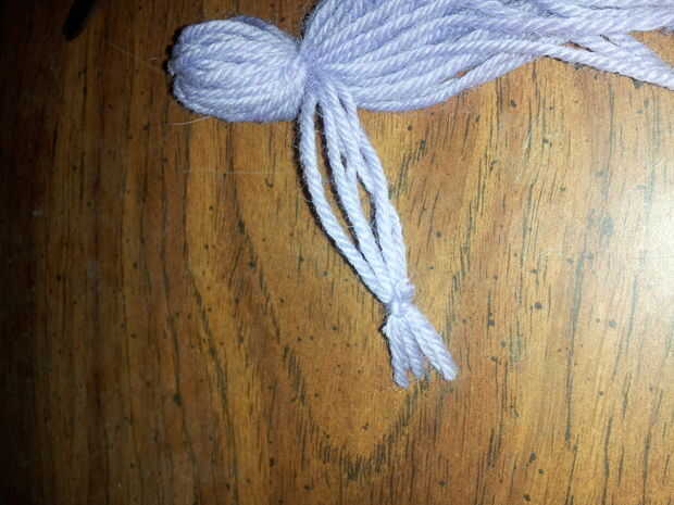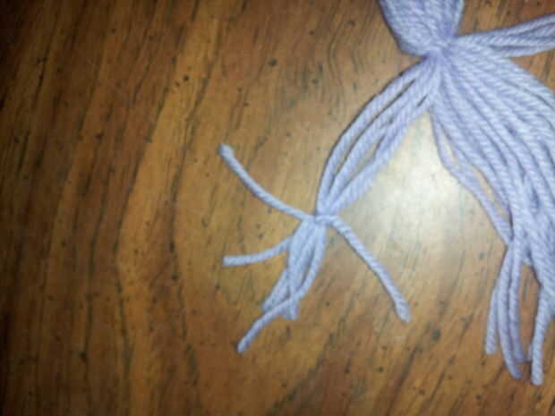 para hacer los brazos, sólo tirar algunos filamentos de hilo de la media a cada lado. No tire demasiado o la muñeca se verá fuera de proporción (lo mismo con tirar muy poco). al final de cada brazo, tome un pedazo de hilo y atar justo sobre donde deben estar las muñecas. su ok para tener hilo extra al final, porque usted podrá cortar el exceso de todos modos. el pequeño trozo sobrado hace de la mano. Repita este proceso en el otro brazo.