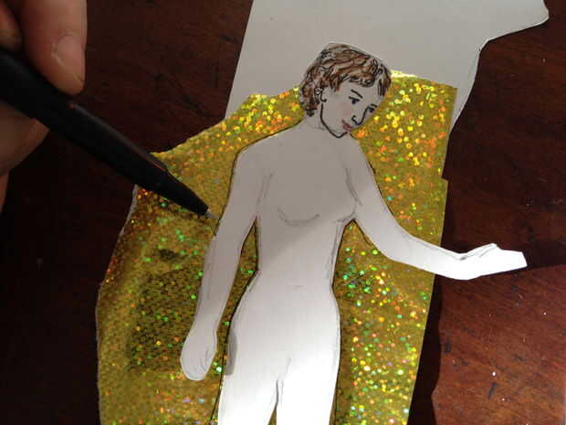 Use su muñeca para trazar la forma de su elección del papel para la ropa. Puesto que no todas las prendas son piel apretada, tomar la muñeca una vez y un rato como que estás dibujando la forma de la ropa para asegurarse de que tienes el diseño que desee. Recuerde que también puede dibujar detalles sobre la ropa: Añadir botón y las costuras con una pluma puede dar una buena ilusión de volumen.