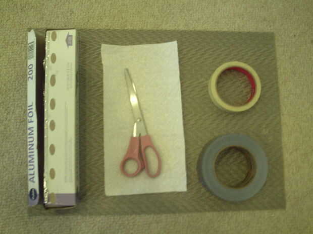 Se necesita papel de aluminio (estaño), tijeras, toallas de papel (por lo menos 3), cinta de enmascarar delgada y cinta aislante.
