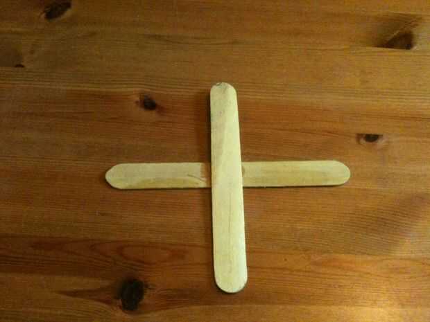 Tomar tus palillos 2 lollipop y pegarlos en una forma de X y dejar para secar. dependiendo de qué pegamento usas esto puede ne durante la noche.
