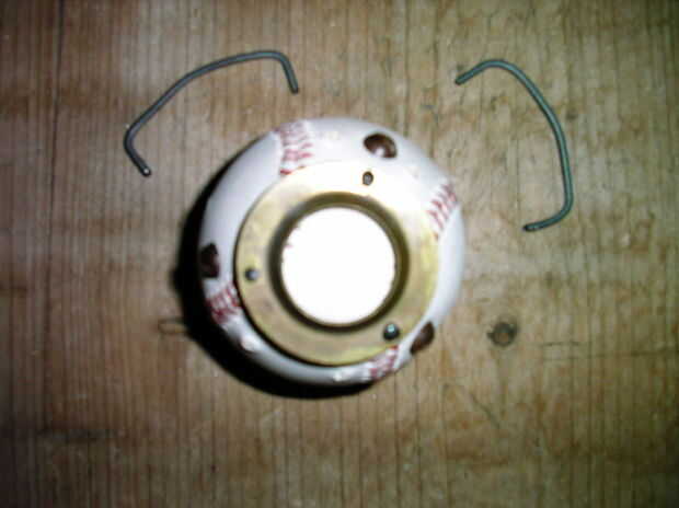 Ahora doble el cable en la forma adecuada para representar una rejilla protectora, y, después de realizado los agujeros en los puntos de derecho, puede arreglarlos en la bola de béisbol simplemente martillando las piezas de alambre en los agujeros.