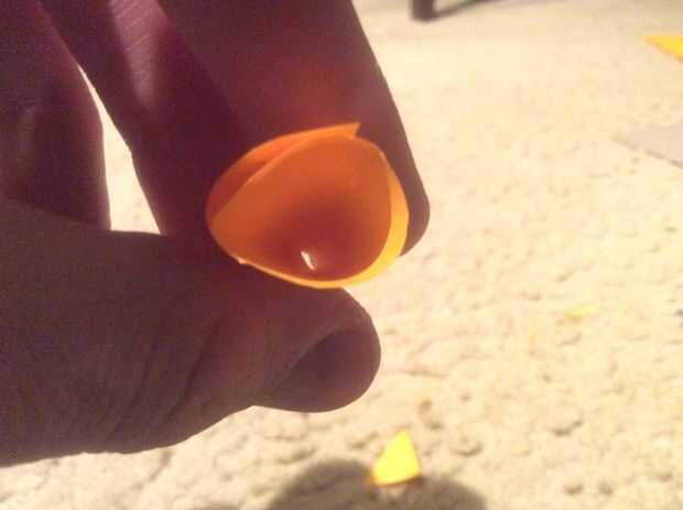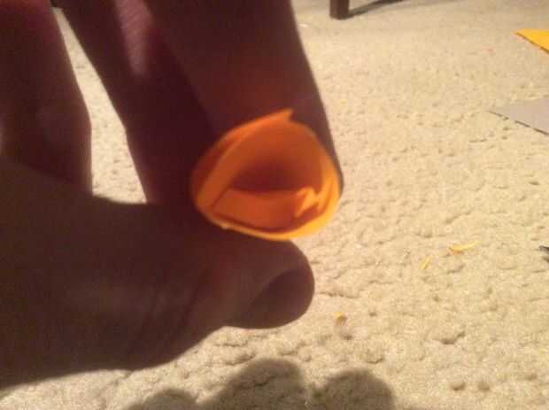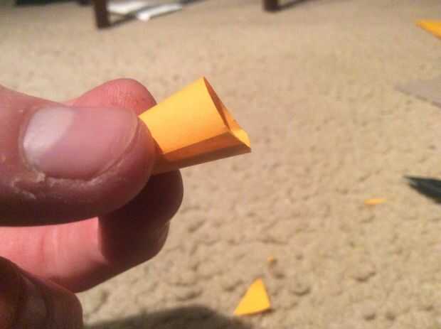 (Imágenes 7 y 8) Poner pegamento caliente en el interior de la nariz. Me quedé un poco de papel para guardar cola y hacerla un poco más robusto. No dude en hacerlo así.