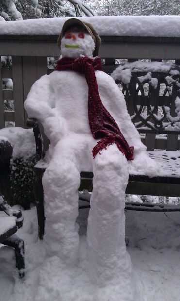 probablemente el muñeco de nieve más alto que he visto. La nieve estaba perfecta para hacer un muñeco de nieve, y antes de que supiera que tenía 5 enormes bolas de nieve. Lo empezamos con un sombrero pero decidió que una piña sería mucho más frío.