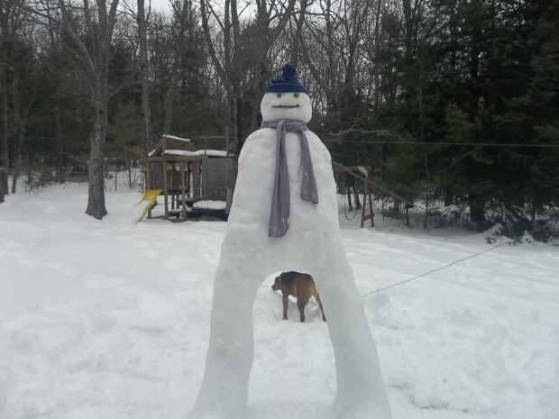 Durante las vacaciones de invierno con más de un pie de nieve recién caída, yo y mi hermano pequeño decidió hacer un muñeco de nieve. No un muñeco de nieve normal, pero con las piernas!