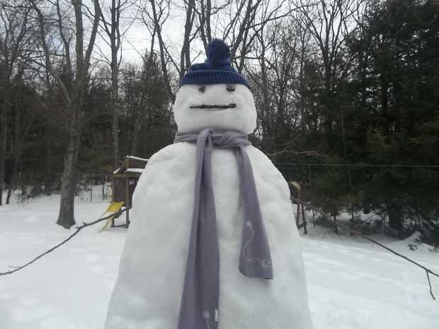 Lo que hicimos fue hizo dos piernas primero y dejarlos congelarse durante la noche, al día siguiente apilados en mojada de la nieve en la parte superior y había construido hasta la altura deseada. Luego hacer la cabeza y le dio unos zapatos de nieve. Se utilizaron rocas para los ojos y palos por la boca y los brazos. Lo que dio el muñeco de nieve, un gorro y una bufanda. Había terminado el muñeco de nieve y lo nombró Trevor.