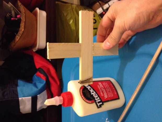 Para reforzar la integridad del muñeco de nieve, tomé una pequeña madera y pegado para formar una base.