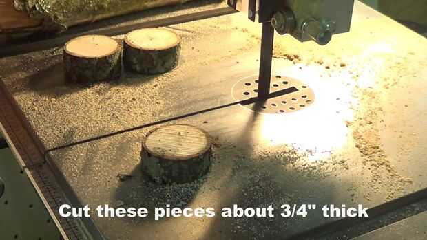 Encontré una vieja rama de árbol en el patio unos 2" redondo. Cortar 3 piezas de aproximadamente 3/4" densamente.