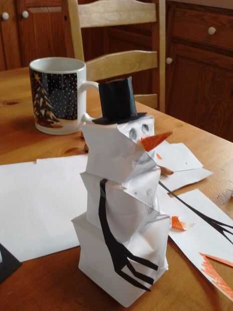 Puede hacer este muñeco de nieve (o Snowwoman o Snowbeing) con materiales comunes alrededor de su hogar u oficina.