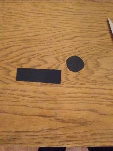 corte algunas formas para el gorro y la nariz. Necesita un rectángulo negro, un círculo negro y un triángulo naranja.