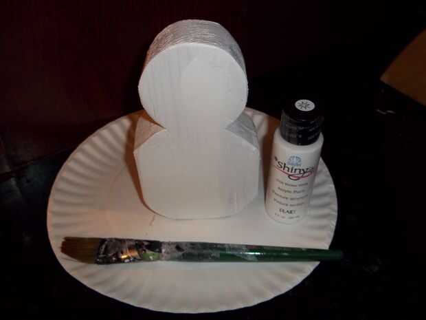 Otro buen aspecto es si pones poco de pintura blanca sobre un plato de papel y dejarlo secar un poco, hasta que se ponga espesa y luego la esponja en el muñeco de nieve. Esto agrega profundidad y tiene una buena nieve mira a él.