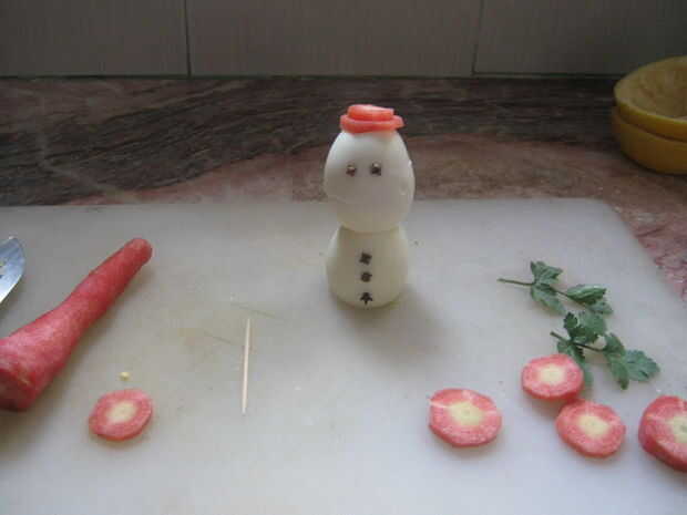 Muñeco de nieve de vacaciones (2 / 3 paso)