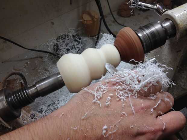 Le di el epoxi al día para curar antes de comenzar cualquier trabajo. Luego fue apagado para el torno. Puesto que la botella había sido deforme debido al calor del pegamento curado, tenía Plaza hasta la parte inferior de la sierra.