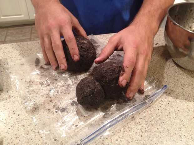 Rodillo oreos mezcladas a los tamaños adecuados... Pequeñas, medianas y grandes