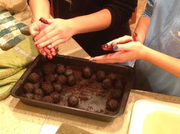 Rodillo de la mezcla en bolitas de 1 pulgada.