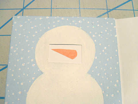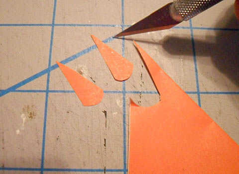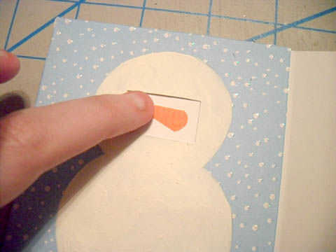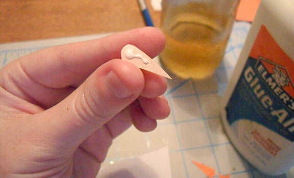 Aplicar un punto de pegamento en la parte posterior de su zanahoria naranja papel. Untar con el dedo para crear una fina película.