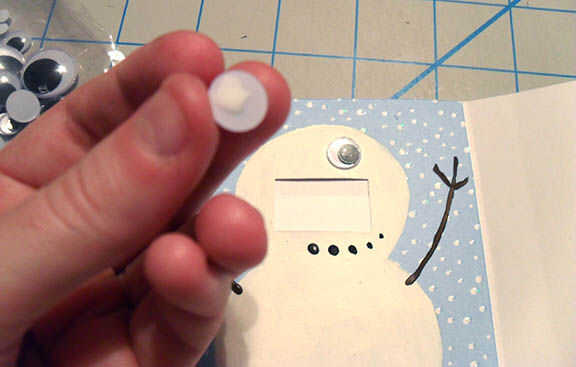 Al final, sentí que necesitaba mi muñeco de nieve al pop más de la página. La luz de fondo azul estaba demasiado cerca de la pintura blanca. Uso un rotulador negro para delinear su cuerpo si encuentras este es el caso para usted.