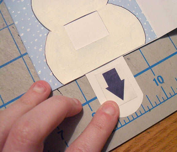 Tire de la pestaña , para que sea claro para el receptor de la tarjeta lo que hay que hacer, creo que es una buena idea tener una flecha o la palabra "tirar" en el extremo de su ficha. Usted podría hacer esto con marcador, lápiz, pintura o pegatinas. Tenía unas pegatinas de flecha crujiente agradable, así que apliqué uno de esos.