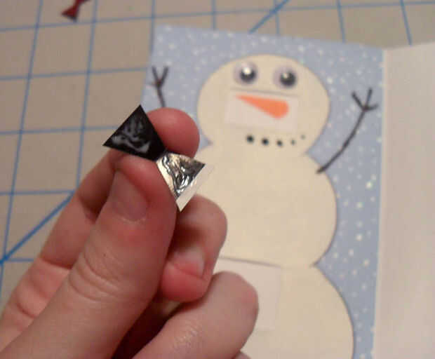 Usted puede encontrar que su muñeco de nieve es un poco llano y ser tentado a vestirlo. He probado unas cuantas cosas que todo parecía demasiado mucho una vez la zanahoria de la broma fue revelada. Al final, simple pajarita negra, corte de papel de desecho, fue justo.