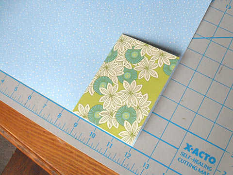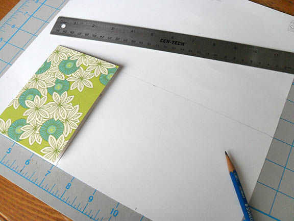 Alinee el borde derecho de la plantilla de hoja de notas en la esquina de la cartulina color. Usé un 3.5 x 5 tarjeta puesto que usted puede encontrar sobres estándar a este tamaño.