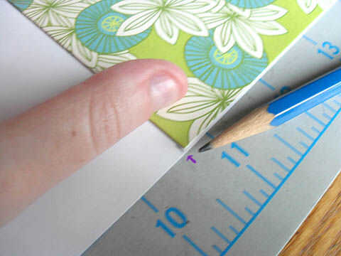 Hacer muescas pequeño lápiz en la cartulina color, para marcar la anchura y la altura de la tarjeta.