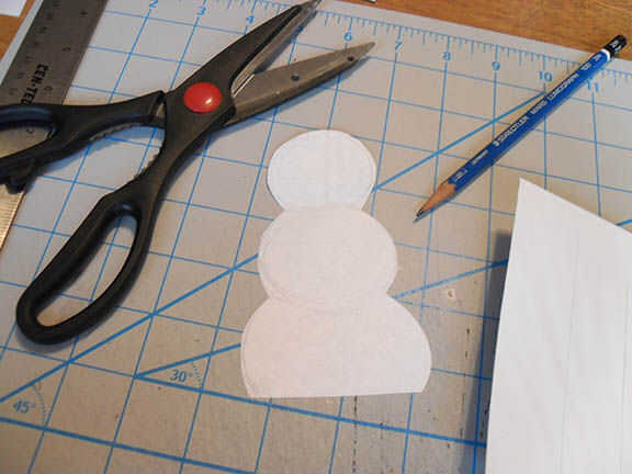 Se puede a mano alzada un muñeco de nieve se forma alrededor de esta pista o hacer una plantilla de papel cero que se ajusta a las dimensiones de la tarjeta principal. Soy precavido y utiliza una plantilla.