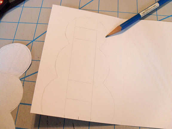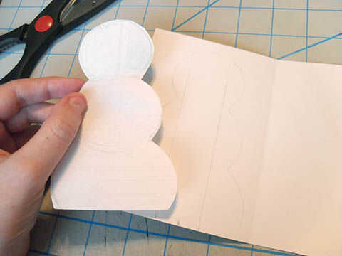 Traza su forma de muñeco de nieve en el centro de su cartulina, sobre las líneas de "pista". La pista debe ejecutar justo hasta su centro cuando haya terminado.