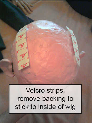 Yo he cosido el velcro en la peluca para mantener en su lugar, luego poner el pelo- y eso es casi todo!