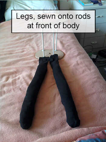Las piernas son cosidas a los polos frontales del cuerpo, yo sólo he virado los brazos a las mangas del puente. (Le encontraré un par de zapatos en algún momento, pero en el momento que disfruta paseando por sólo stockinged pies).