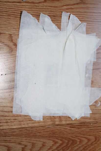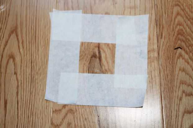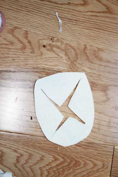 Para el ojo hacer un cuadrado con cinta de enmascarar y layerd es gruesa. Luego cortar una forma de tipo EX hacia fuera y más delgada en un círculo para mis ojos. Una vez más, nos estamos pegando esto en con el látex. Asegúrese de no pegarse en tu ceja!