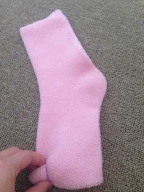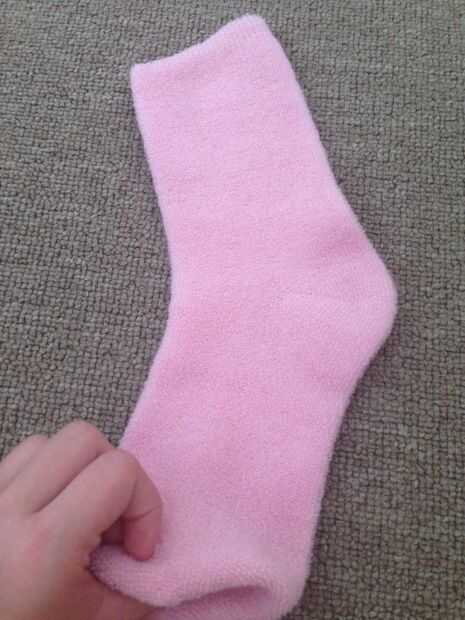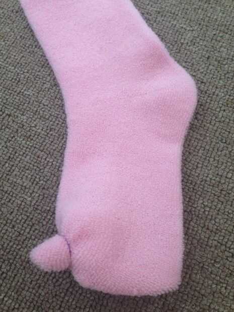1) comienzan con la apertura de la media hacia arriba 2) Utilice sus dedos para enrollar la punta dentro de sí mismo 3) Apriete la esquina del calcetín y atar un elástico alrededor de él (me gusta poner relleno en allí pero usted no tiene que) 4) Repita en el otro lado y tienes 2 pies