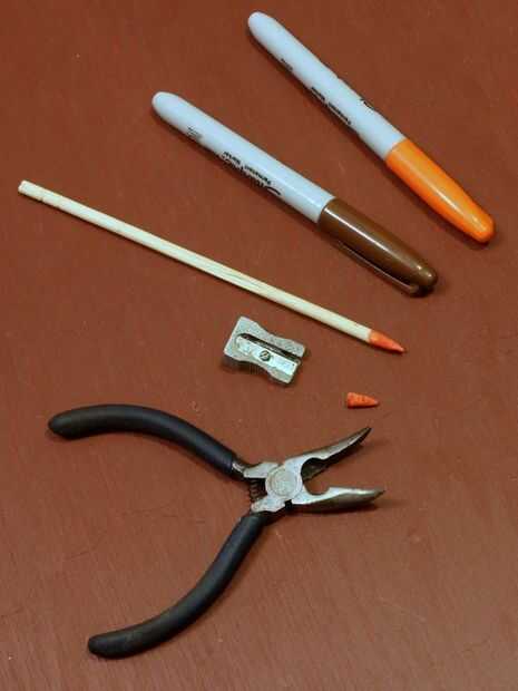 Afilar un viejo palillo y color finales con marcador permanente naranja. He añadido algunas líneas horizontales para la textura de la zanahoria.