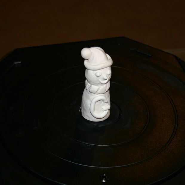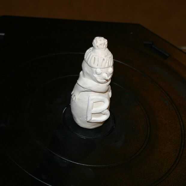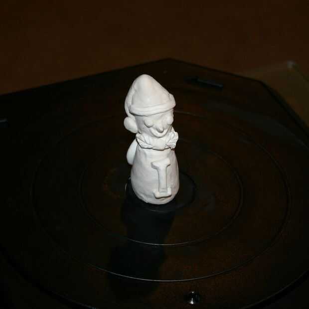 Los muñecos de nieve se examinaron utilizando un digitalizador de MakerBot.  Luego se imprimieron en el 80% del tamaño original.